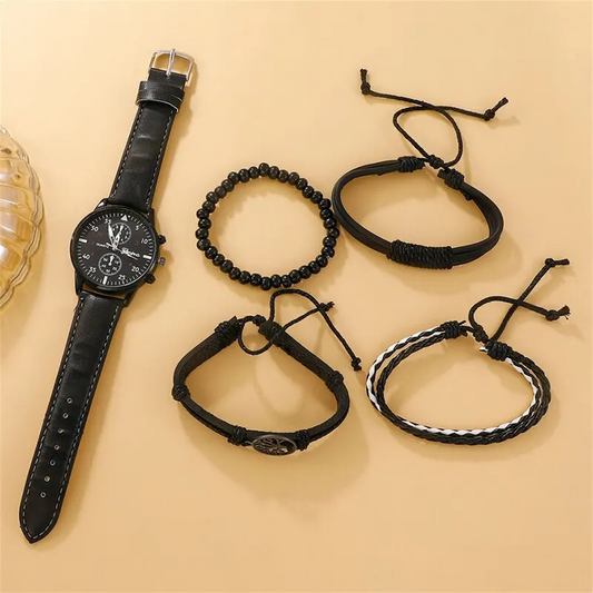 DESCONTO 32%Set Reloj Hombre - 1 Reloj + 4 Pulseras de Regalo