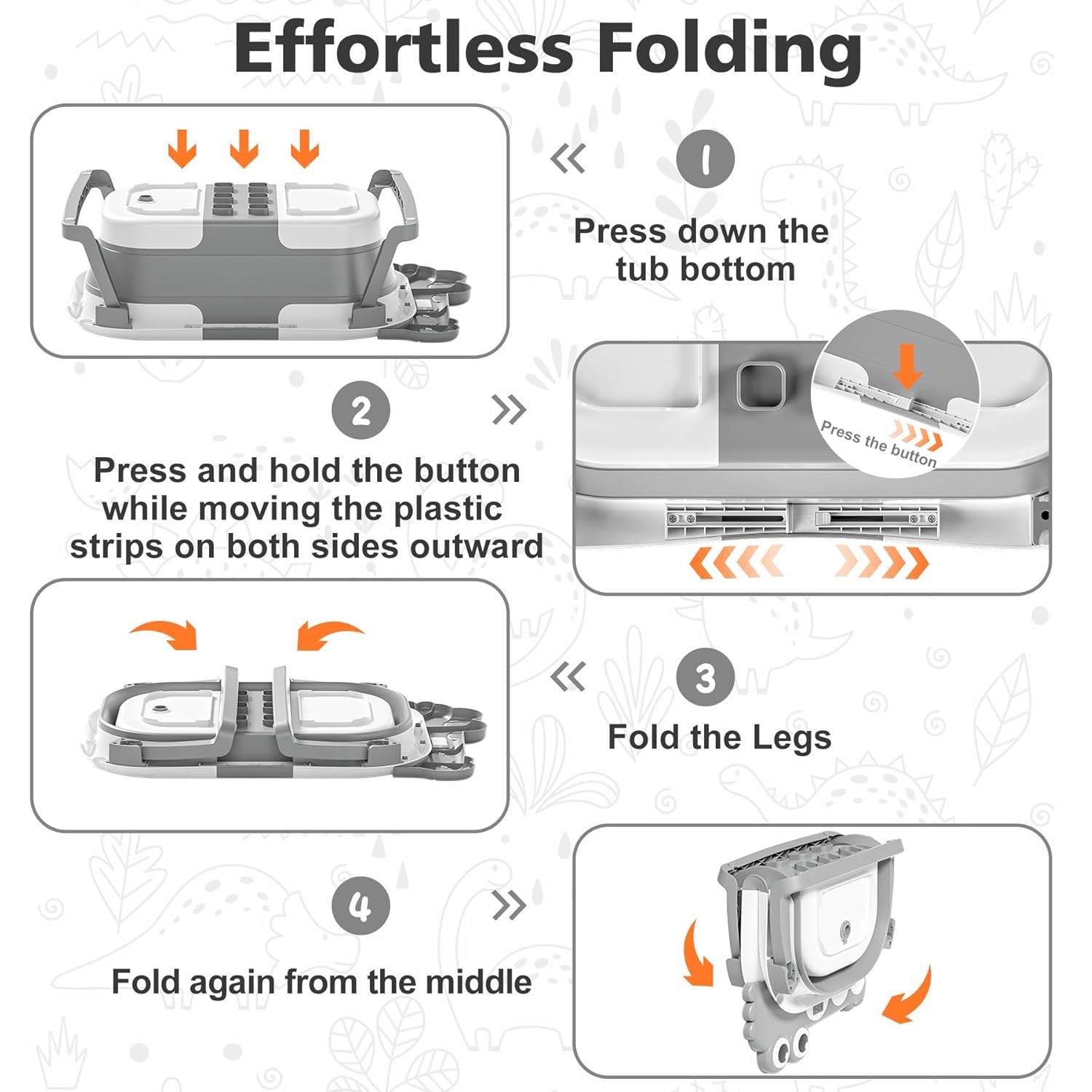 Si te preocupa el espacio en casa o necesitas llevar la bañera de viaje, este modelo es perfecto para ti. Su sistema de plegado compacto permite guardarla en cualquier rincón sin ocupar espacio innecesario.