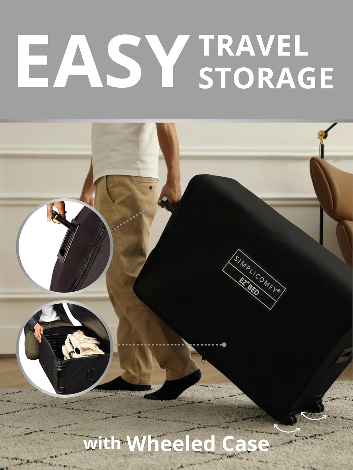 Gracias a su diseño compacto y plegable, se guarda fácilmente en su bolsa de transporte, ocupando un espacio mínimo en tu maleta o armario. No más colchones inflables que se hunden o se pinchan con facilidad. La estructura de soporte brinda la firmeza que necesitas, evitando dolores de espalda y asegurando un descanso reparador.