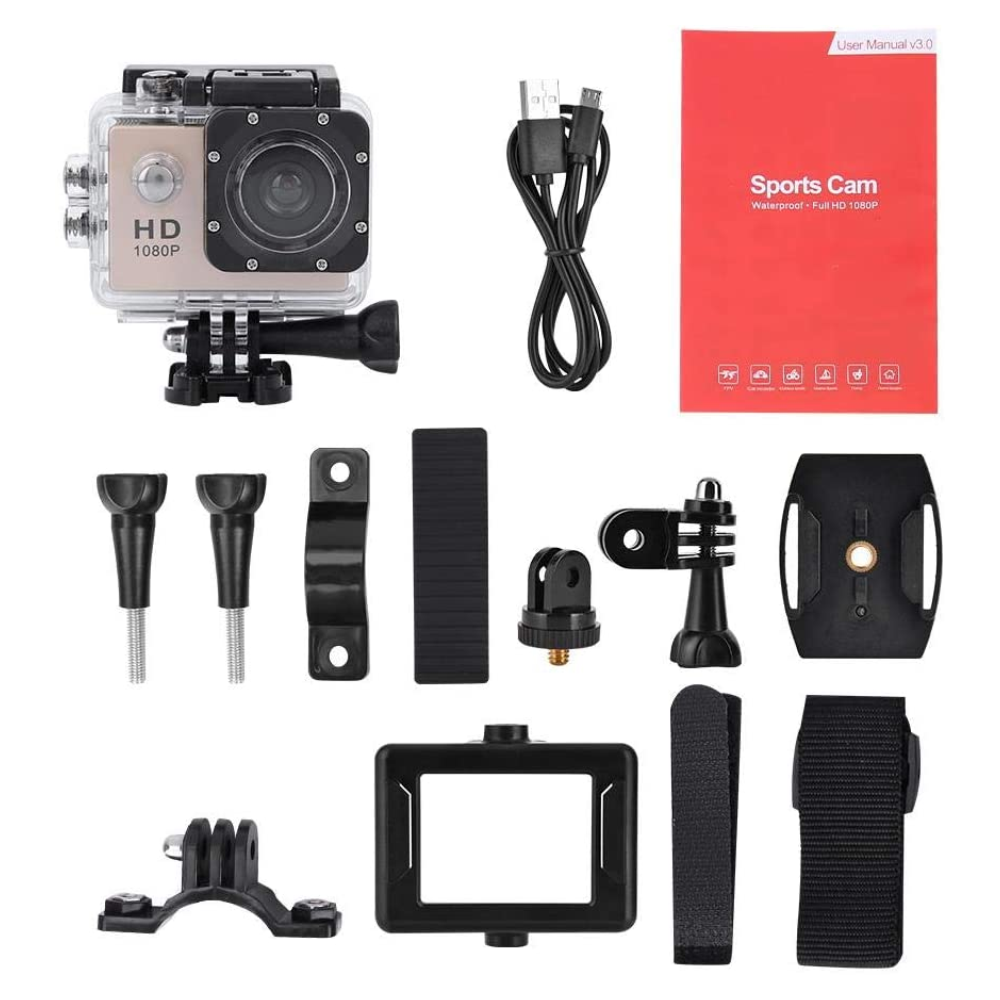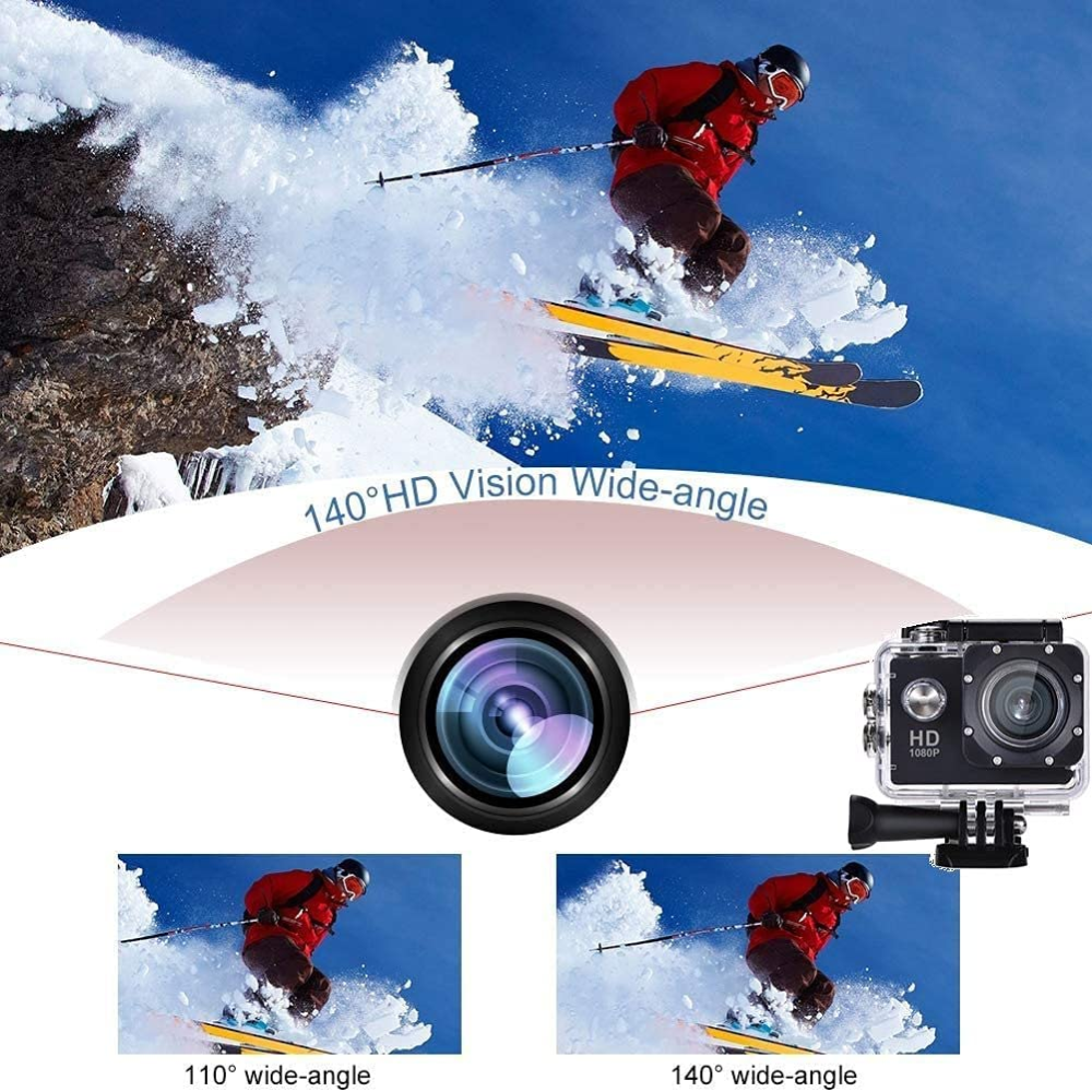 CÁMARA DE ACCIÓN 1080P 12MP CÁMARA DEPORTIVA FULL HD 2.0 PULGADAS ACTION CAM 30M SUBACUÁTICA IMPERMEABLE SNORKEL SURF CÁMARA CON LENTE GRAN ANGULAR Y KIT DE ACCESORIOS DE MONTAJEFull HD 1080P: cámara deportiva para principiantes y niños con lente gran angular de 2 aumentos, vídeo de 1080p hasta 30 fps que garantiza que puedas capturar fácilmente cada momentoCarcasa impermeable: carcasa impermeable de alta calidad, esta cámara sumergible puede sumergirse hasta 30mts. Te ayuda a grabar momentos reales de deportes acuáticosPaquete de accesorios: La cámara deportiva incluye accesorios de montaje se puede montar fácilmente en cascos, bicicletas, tablas de surf, coches y otros objetos. Puedes divertirte con tus deportes favoritosBatería recargable de larga duración: La cámara de acción viene con una batería recargable extraíble de 900 mAh, que se puede reemplazar fácilmente, y el tiempo máximo de grabación continua es de hasta 40 minutos. Asegúrate de que no te pierdas ningún momento maravillosoPantalla LCD de 2 pulgadas: Pantalla en tiempo real de la pantalla LCD de 2 pulgadas, conveniente para capturar cada momento.1. Carcasa resistente al agua que te permite filmar fascinantes deportes acuáticos; Resistente al agua hasta 30 metros bajo el agua2. Pantalla de alta definición que muestra y reproduce fascinantes vídeos grabados3. Batería desmontable fácil de reemplazar y prolonga la vida útil de su cámara4. Admite grabación de vídeo mientras se carga, lente gran angular de 140 grados5. Mini apariencia, colores variados disponibles. Admite tarjetas de almacenamiento de hasta 32GB como máximoAdmite tarjetas de almacenamiento de hasta 32GB como máximo (no incluidas)Pantalla de cristal líquido (LCD) de 2.0 pulgadasÁngulo de visión amplio de 140 grados.Interfaz USB USB2.0Interfaz de fuente de alimentación 5V1ACapacidad de la batería 900MAHTiempo de grabación de unos 20 minutosTiempo de carga de aproximadamente 3,5 horasLo que obtienes con tu compra:Cámara HD 1080P con batería de iones de litiofunda impermeable1 cable USBJuego de 2 correasJuego de 2 almohadillas adhesivasSoporte para bicicleta/poste con 2 tornillos de montajeJuego de 3 soportes de clipJuego de 2 soportes de extensión con 2 tornillos1 manual de instrucciones en inglés*Condiciones para la solicitar la garantía del producto:Ten en cuenta que el producto debe llegar en buen estado físico, sin golpes, rayones, o fisuras, por tanto, te recomendamos empacar muy bien en una caja de cartón, protegiendo con plástico burbuja o papel. En caso de llegar golpeado o dañado por la transportadora no podemos hacernos responsables del producto, tampoco iniciar el proceso de garantía. La garantía sólo cubre defectos de fábrica, no cubre daños ocasionados por el comprador