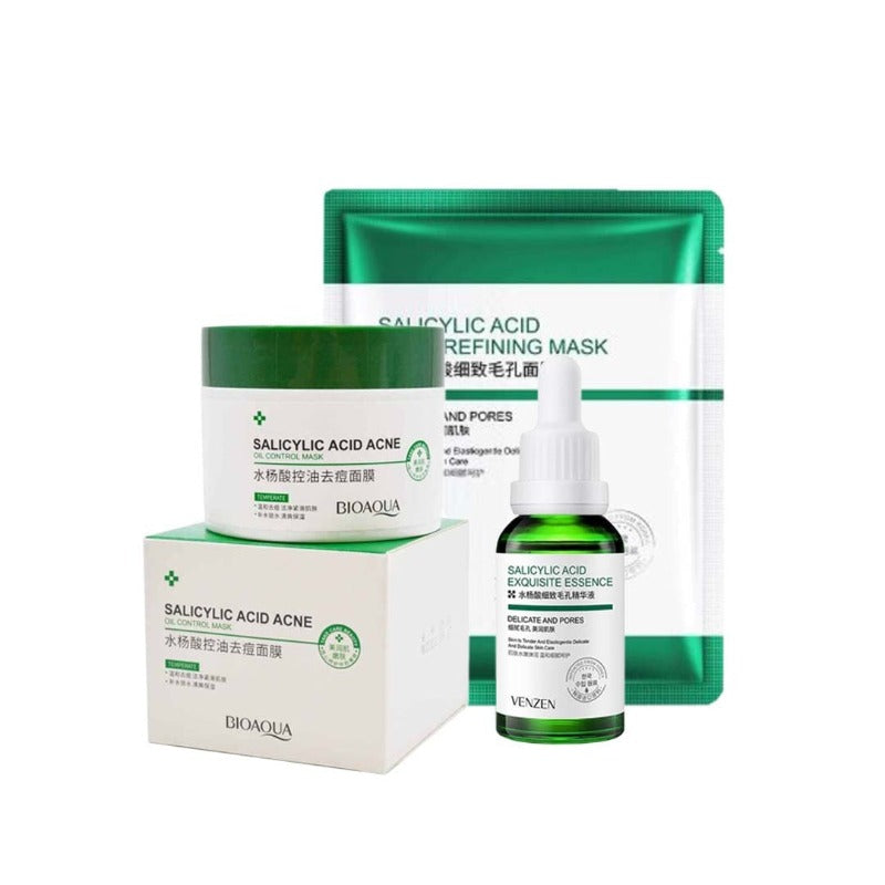 El Combo Ácido Salicílico es una solución integral para tratar y prevenir el acné y los puntos negros, reducir la inflamación y mejorar la salud de la piel. Este combo incluye los siguientes productos: