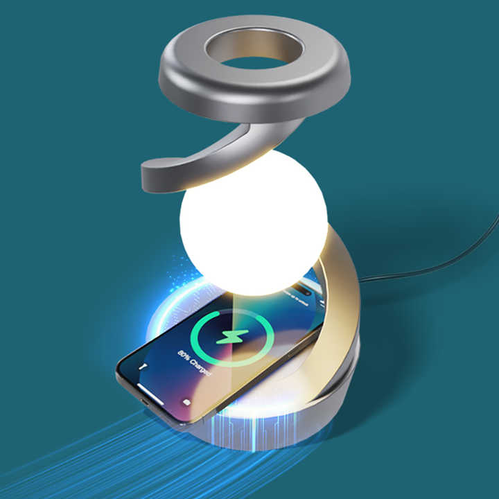LÁMPARA DE MESA MODERNA CON CARGA INALÁMBRICA Y BOLA EN SUSPENSIÓN