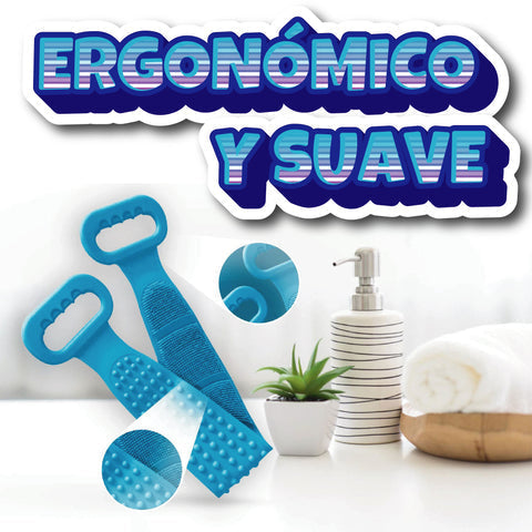 Con un diseño ergonómico y suave de doble cara te permite llegar a todos los puntos de tu cuerpo realizando una limpieza al 100% de suciedad y piel muerta, dejando tu piel suave y fresca.