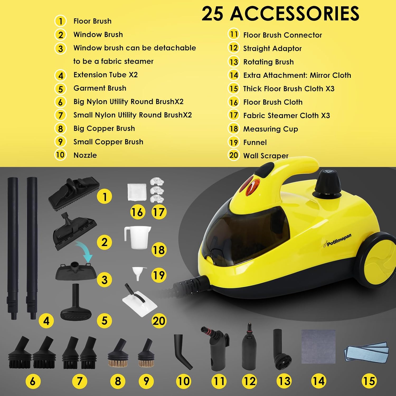 Descubre el poder del Limpiador de Vapor Profundo de 1500W, una herramienta versátil y eficaz que deja tus superficies impecables sin necesidad de productos químicos agresivos. Con su diseño portátil y múltiples accesorios, es ideal para limpiar desde tapicería hasta azulejos, alfombras y más.