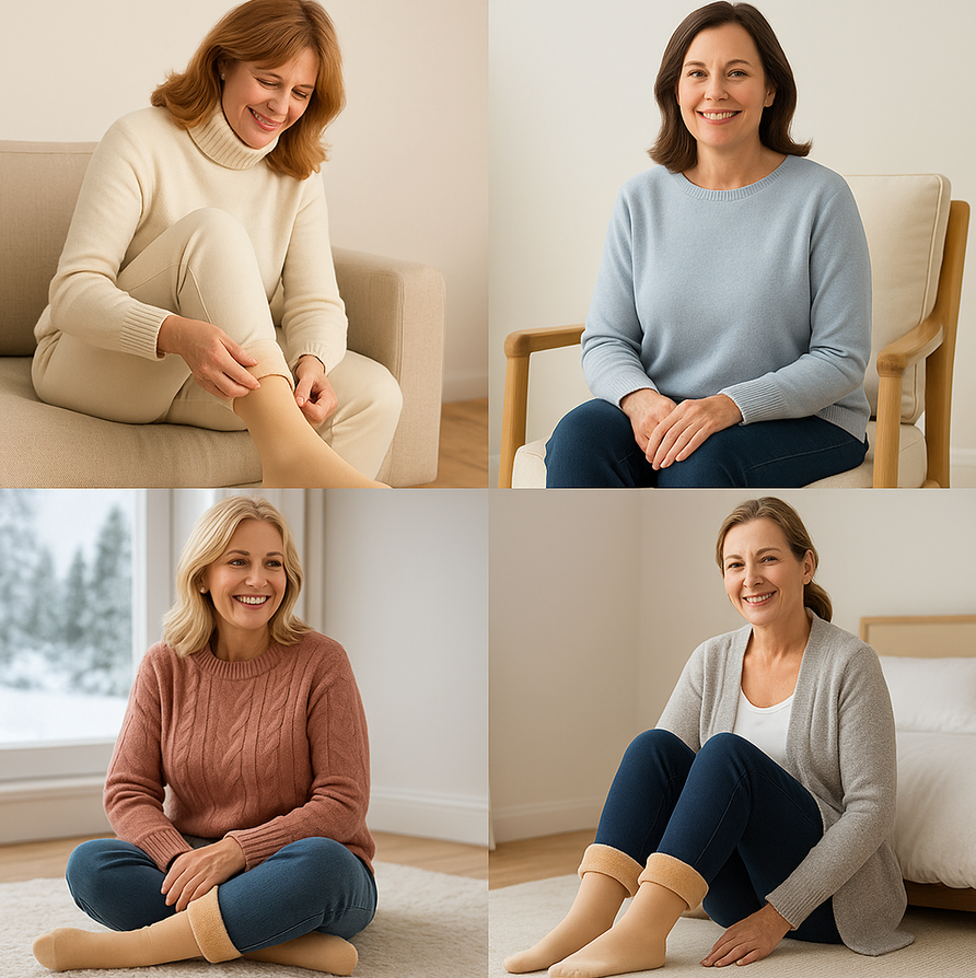 Las bandas elásticas en el tobillo no comprimen las piernas, lo que le brinda la mejor y más cómoda experiencia de uso para actividades diarias e incluso durante el sueño. Los calcetines muy suaves y de felpa hechos de microfibra Premium proporcionan la máxima comodidad para tus pies, manteniéndolos calientes, suaves y sin sudor.