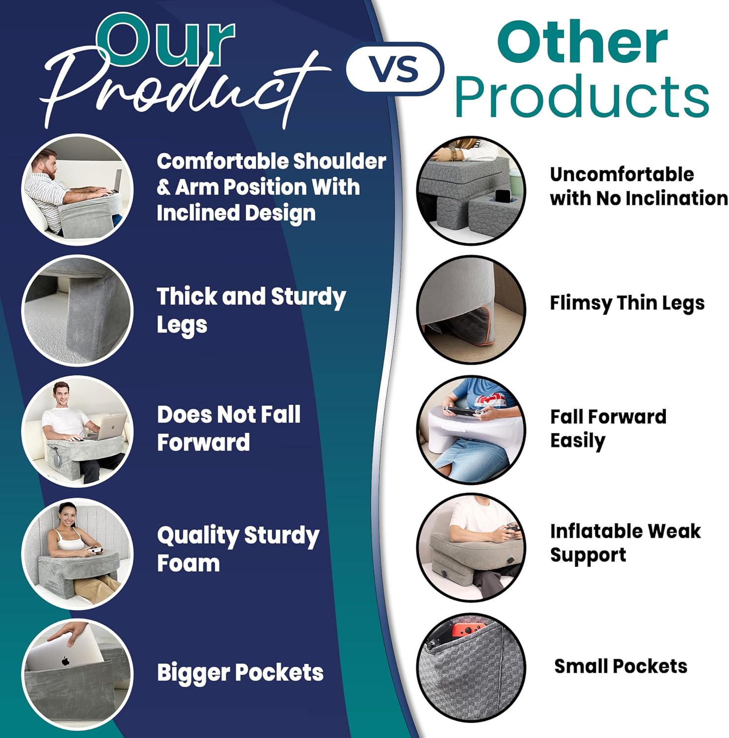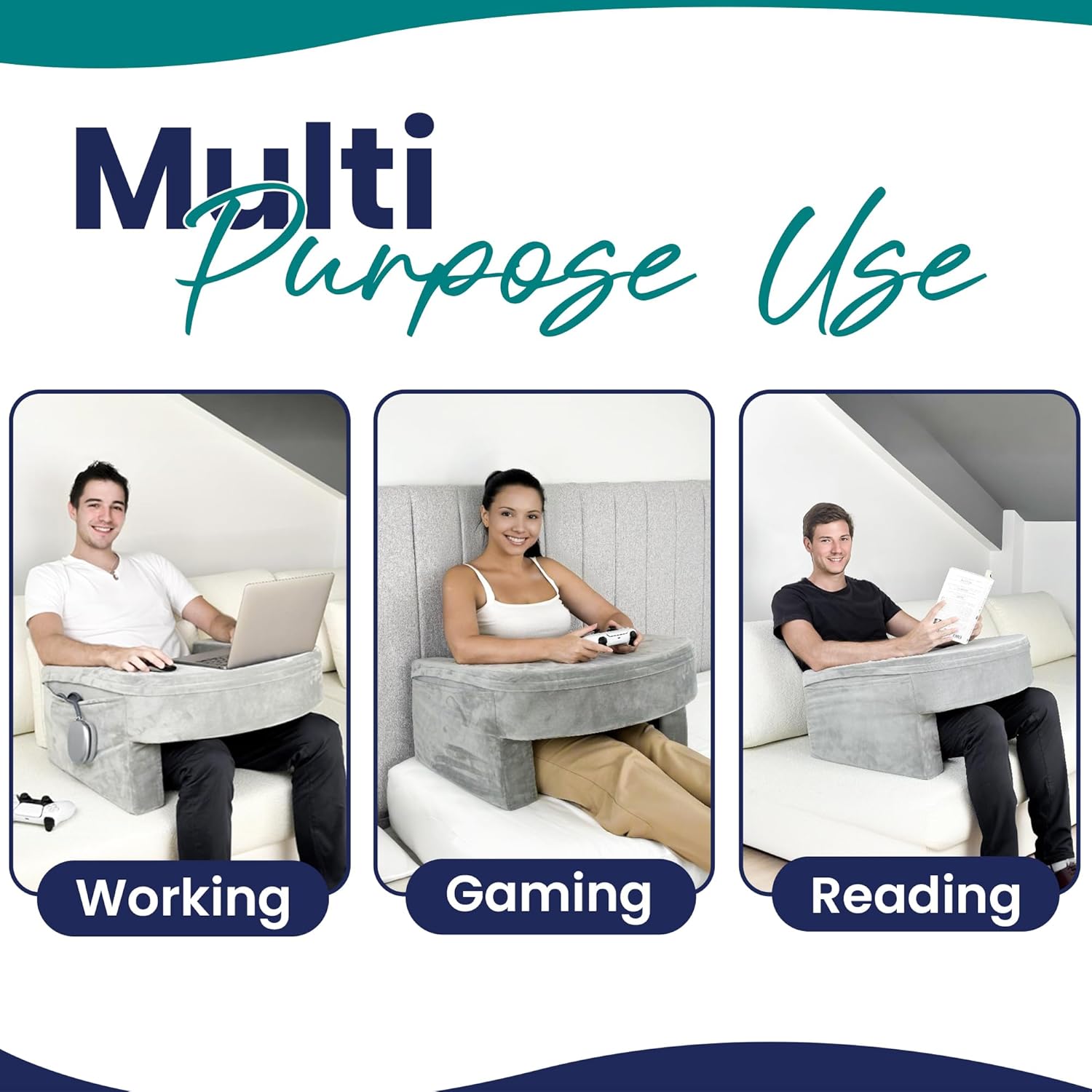 ¿Horas frente al computador, estudiando o viendo series? La mesa de almohada ergonómica con apoyabrazos es la solución perfecta para mantener una postura cómoda y reducir la fatiga en brazos y cuello.