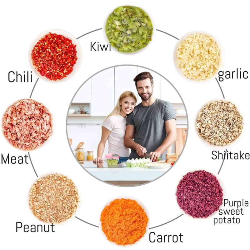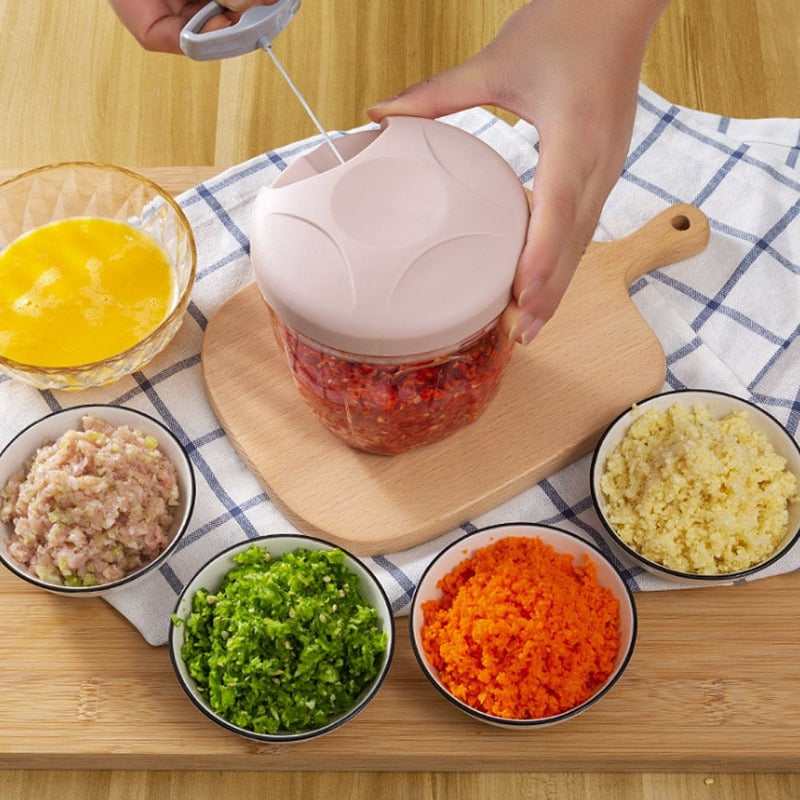-Picador Rallador Molino Manual Sin Cables Puedes controlar con precisión el tamaño de los alimentos picados controlando el número de tirones.