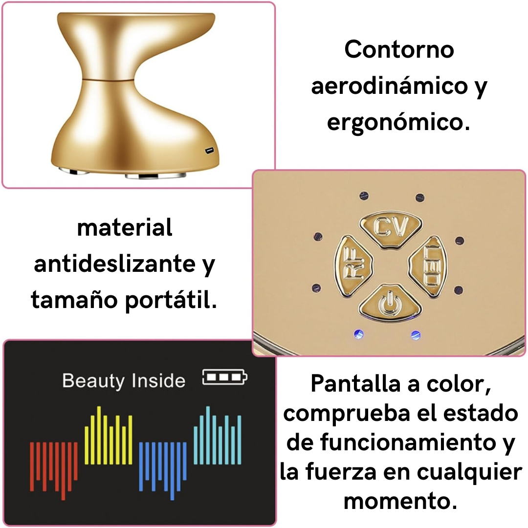 RevitaSkin Pro utiliza tecnología avanzada de ultrasonido, radiofrecuencia y luz LED para reducir arrugas, eliminar celulitis y mejorar la textura de la piel de manera eficaz y segura.