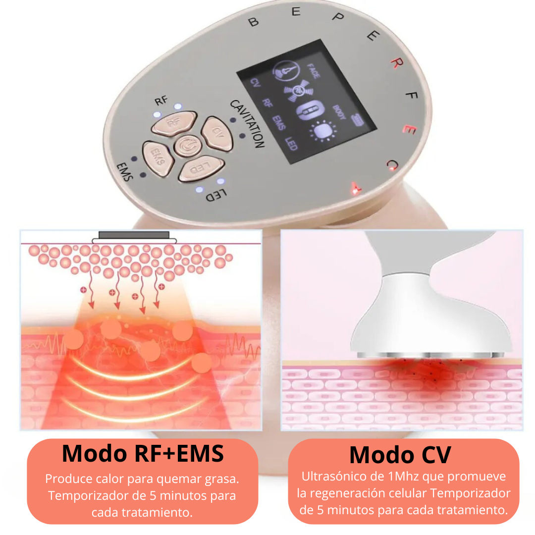 RevitaSkin Pro combina ultrasonido, RF y LED para un tratamiento completo de rejuvenecimiento. Obtén resultados visibles sin dolor ni complicaciones.