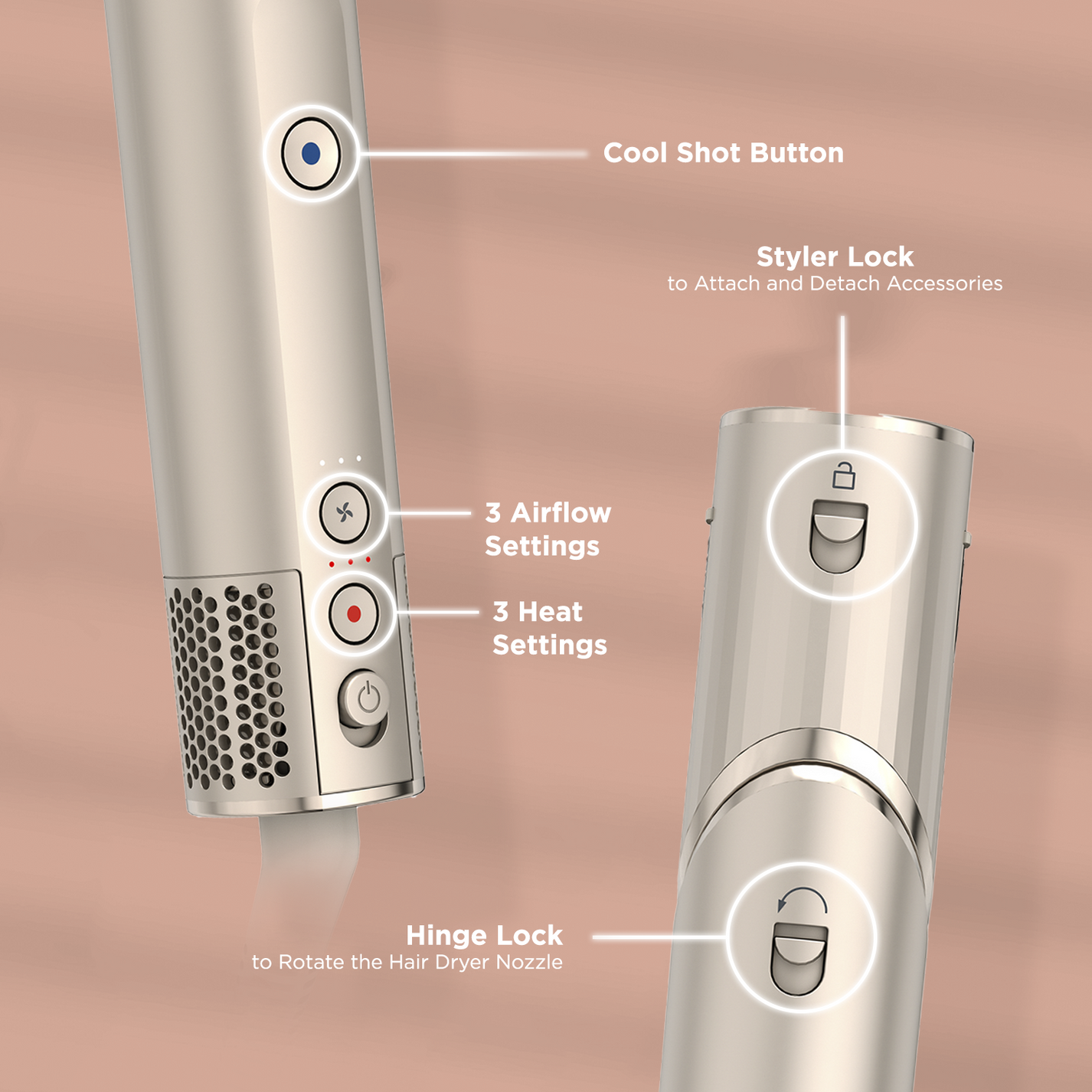 ✔️ Regulación de temperatura y velocidad – Control total para cada tipo de cabello. 🔥🎚️