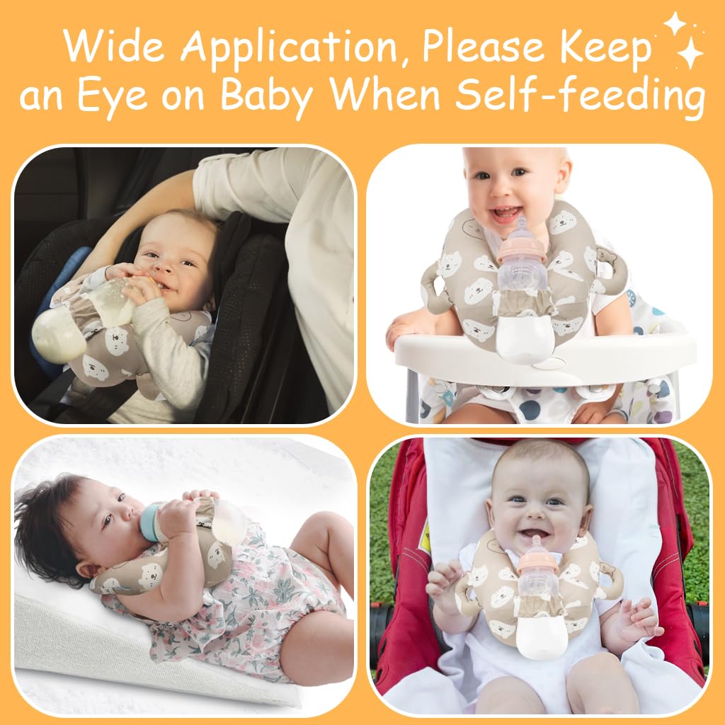 La almohada de apoyo sostiene suavemente la cabeza y el cuello del bebé, mientras que el soporte ajustable mantiene el biberón en una posición estable. Esto permite que el bebé se alimente de manera más natural sin necesidad de sujetarlo todo el tiempo.